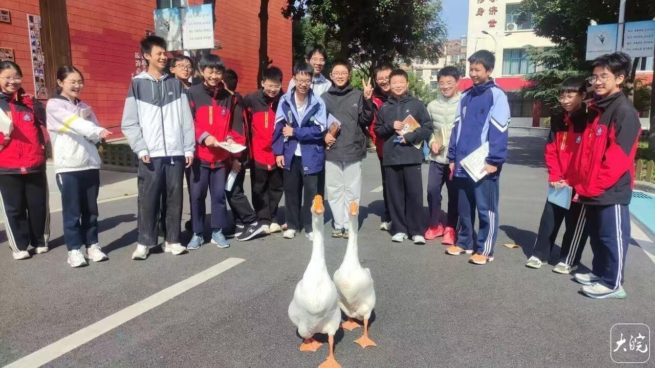 大皖新闻讯 近日,合肥一六八玫瑰园北校习友校区,两位新晋“顶流”火了。他们不是学霸,也不是社团达人,而是两只身披白羽、步态雍容的大白鹅。这处独特的景观不仅是学校劳动养殖教育的一部分,更意外成为了全校师生的“快乐源泉”。